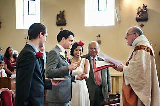 Following the wedding ceremony the couple have received a gift of two white pigeons which they released. The pigeons were very eager to fly away but luckily I managed to get the shot I want with their wings just spreading.
